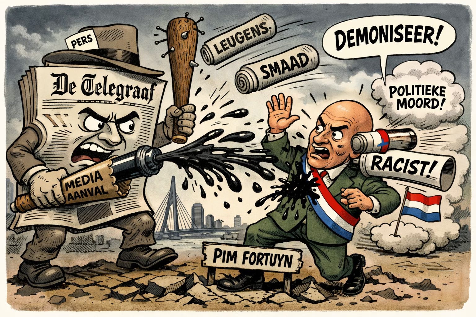 Wie de eigen archieven van De Telegraaf erop naslaat, ziet een consistente lijn: Fortuyn werd weggezet als gevaarlijk, instabiel, onbetrouwbaar. Niet als legitieme systeemcriticus, maar als risico voor de democratische orde. Dat was geen incident, maar beleid — gedeeld met de publieke omroep en andere grote kranten. Het is niet voor niets dat na de dood van Fortuyn hoofdredacteuren, waaronder die van De Telegraaf, op de nationale televisie bijeenkwamen om zijn dood en de rol van de media daarvan te bespreken.